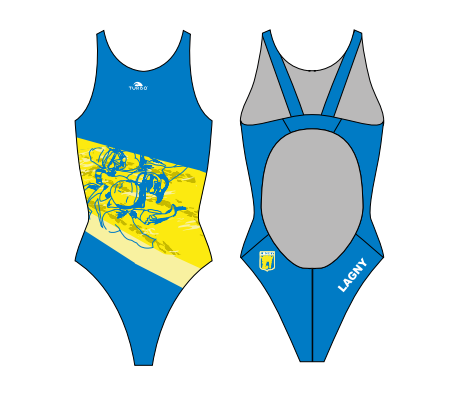 Maillot femme au couleurs du club HSCLagny. Les maillots de marque Turbo présentent une excellente résistance au chlore des piscines et sont parfaitement adaptés à la pratique des sports aquatiques. Pour plus d'informations visitez leur site https://www.turbofrance.fr/