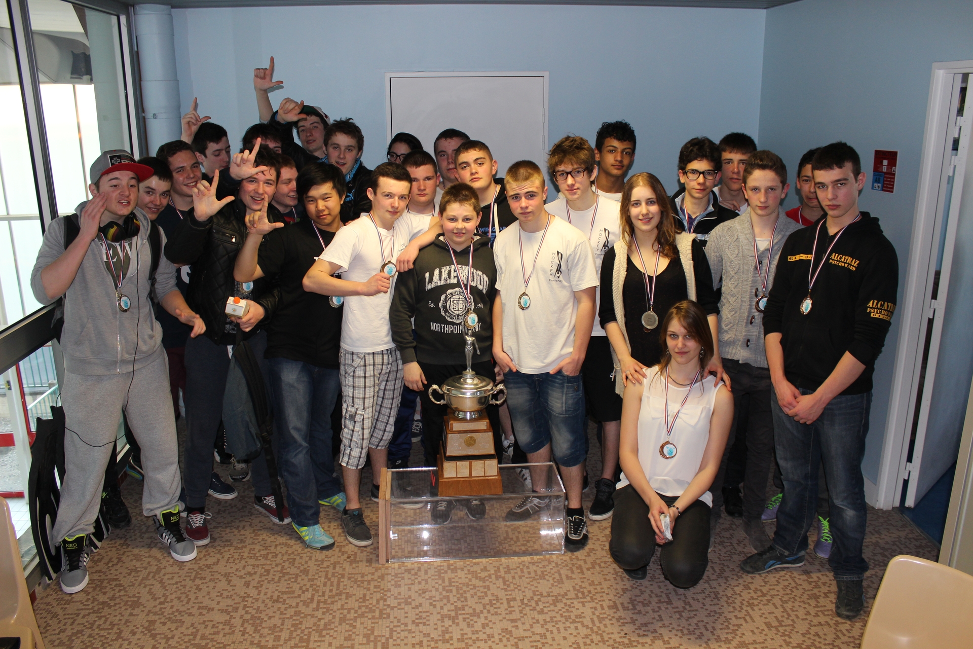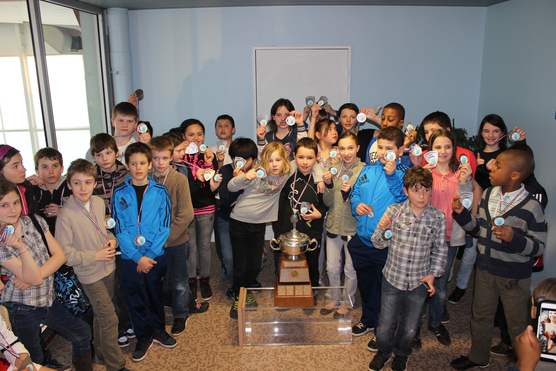 | Les équipes entourrent le Trophée des Champions du Monde 2013 | |