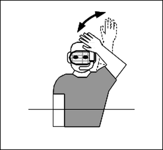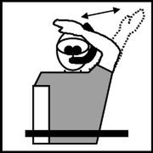 Le si gn e d' ar rê t de j e u e st u n br as te nd u e n l ' ai r , ma i n o u ver t e e f fe ctu an t un mo u ve m e n t l ar g e e t r ap i d e d' u n c ô t é à l ' aut r e