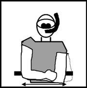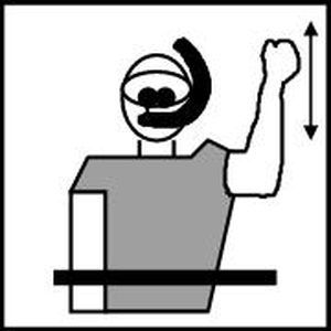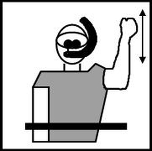 L' u sag e i rré gu li e r d u b r as li b r e e st si gn a l é p ar u n b r as p ar al l è l e à l 'e au , co ud e fl é chi e t p o i n g fer m é : l e br a s s e dé p l açan t dan s u n mo u ve m e n t de p o mp e ho r i zo nt al e