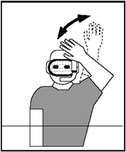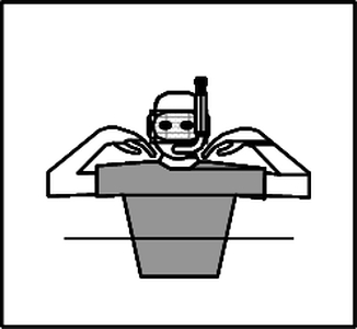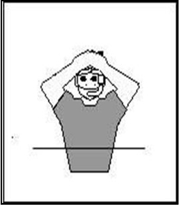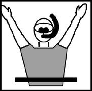 I l e st si gn al é d ' ab or d p ar l e si gn a l d ' arrê t d e j e u , pu i s l e s d e u x co u d e s é ca r té s d an s l e p ro l o ng e m e n t d e s é p a u l e s, l e s avan t -b r as e t l e s ma i n s d ro i t e s, p er p e nd i cul a i re s à l a surf ac e d e l 'e au , d o i gt s j o i nt s e t l e s pau me s des mains tournées vers l'avant. D é c r i r e a ve c l e s d e u x avan t -b r as de s ar cs d e c e r cl e ve r s l a surf a ce d e l 'e au si mu lt an é ment , l e b r as d ro i t v e r s l a gau che e t l e br a s g au ch e ve r s l a dr o i t e . R é p é te r pl u si e u r s f o i s